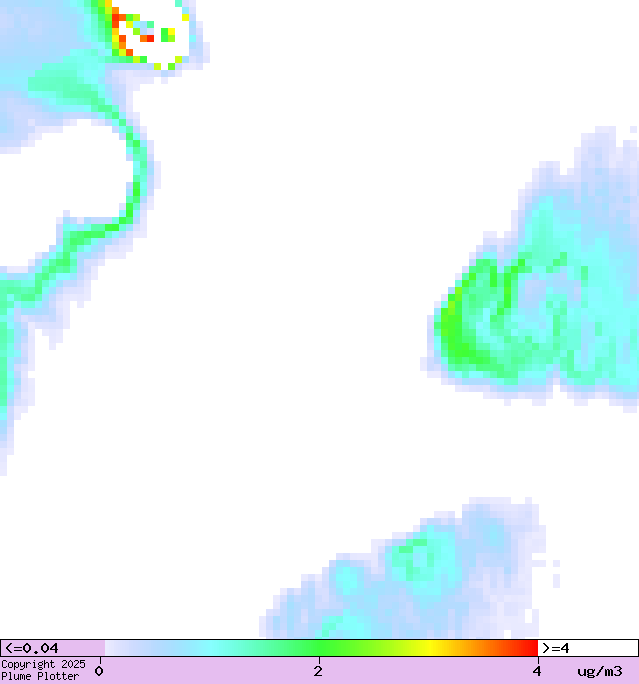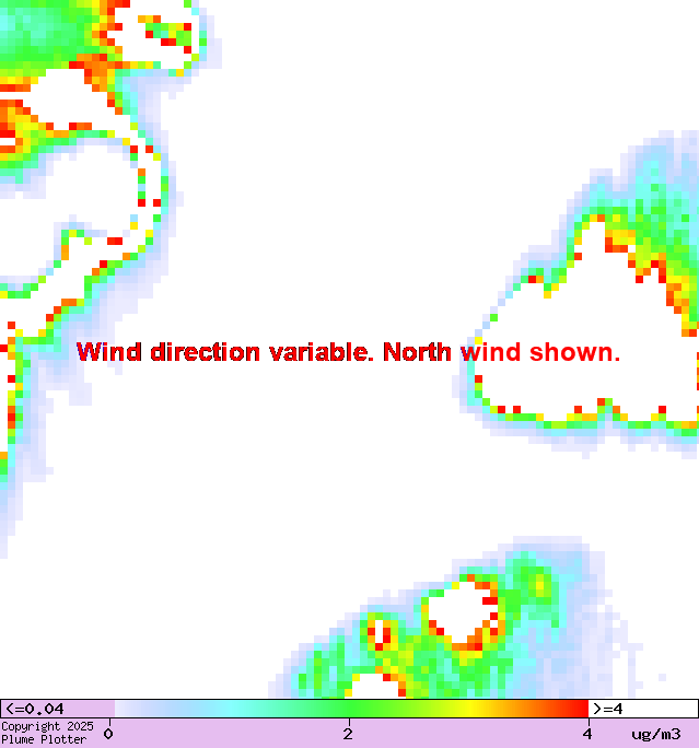 Colours show concentration of oxides of nitrogen at ground level.