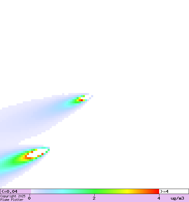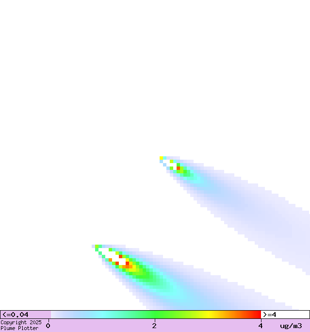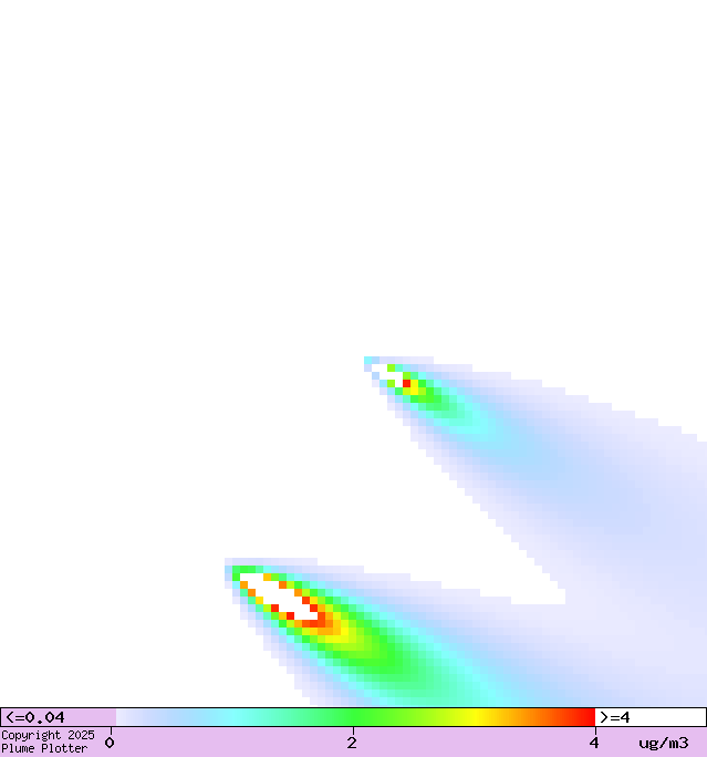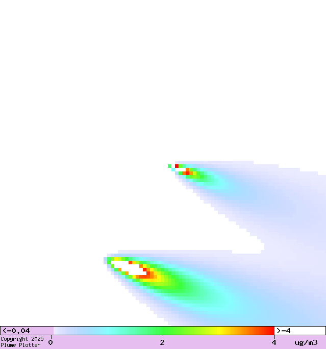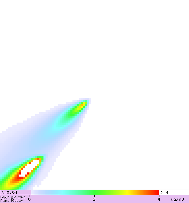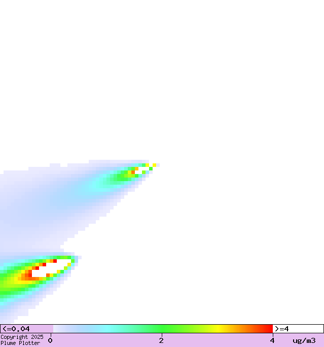 Colours show concentration of oxides of nitrogen at ground level.